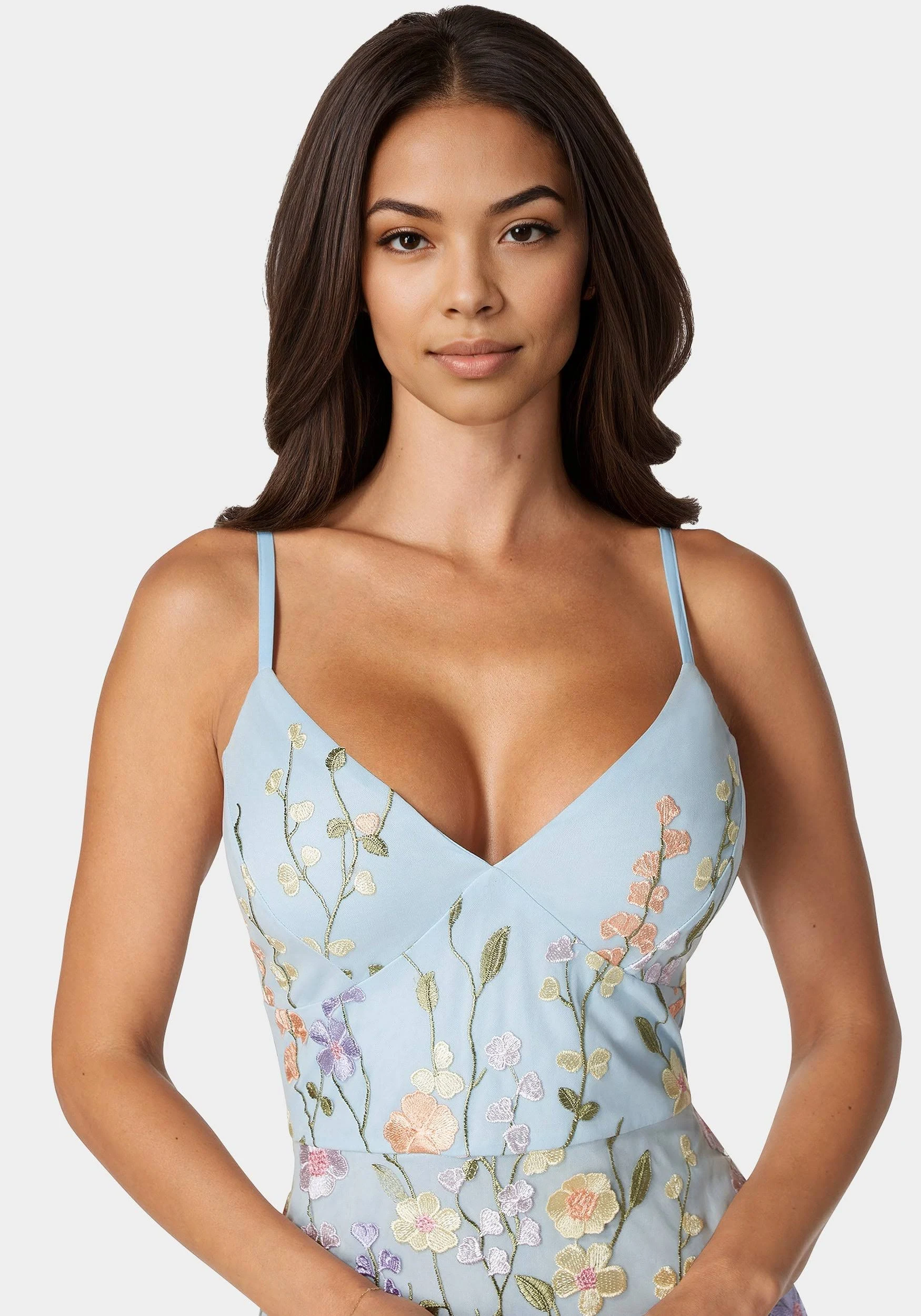 • Intricate floral embroidery that adds visual texture and elegance
