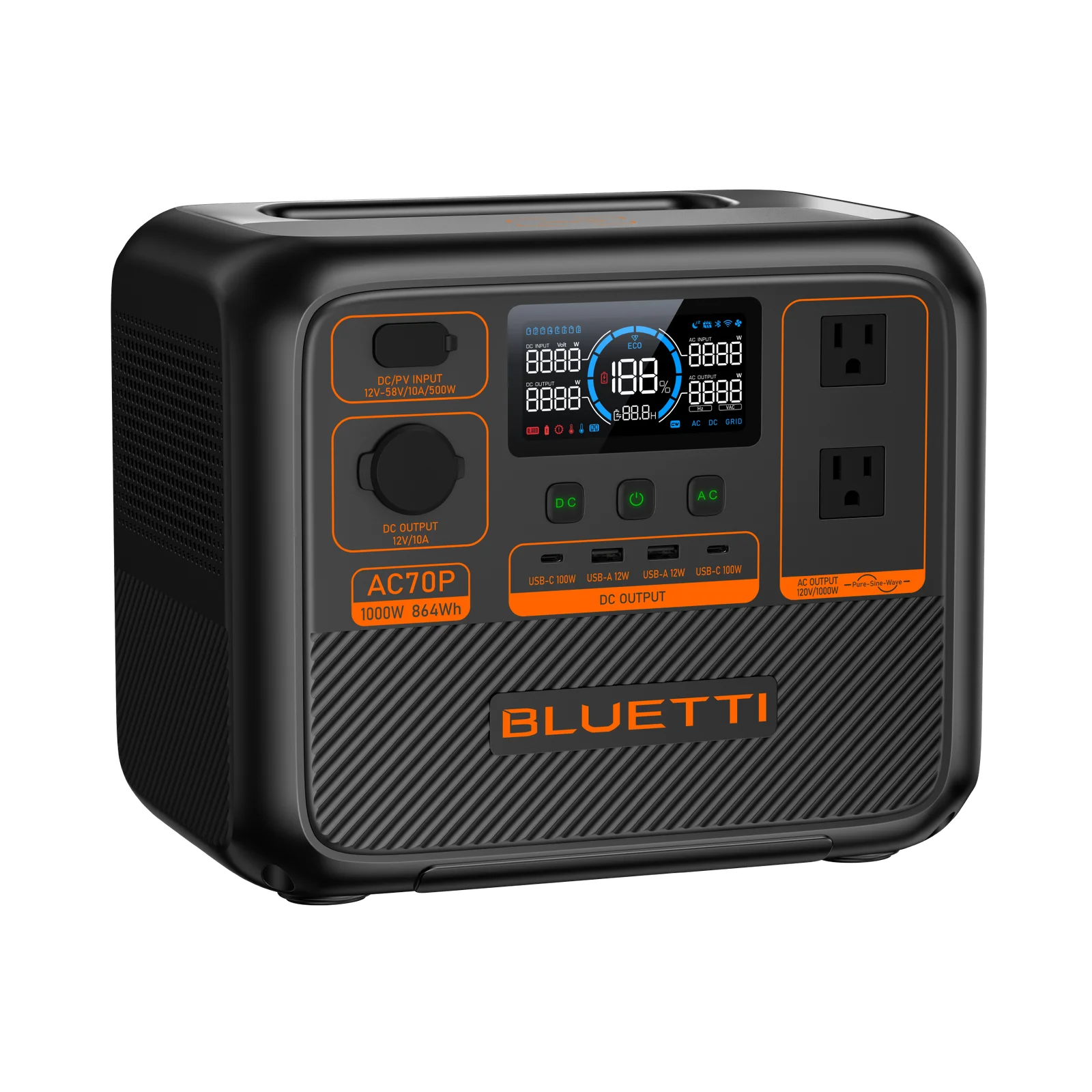 The Bluetti AC70P Portable Power Station features a robust 864Wh capacity and 1000W output to power your equipment. No more worries about power outages interrupting your work. No matter where you are – at home, in your backyard, on a worksite, or on a road trip; you can rely on the Bluetti Solar Generators to get the job done.