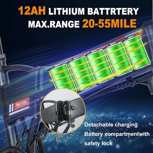 - 【Good Choice for Adventure and Tourism】This electric bicycle adopts a steel frame body, which has the characteristics of low density and high strength.. And it has a bright front light and a rear warning tail light, which can escort you safely when you go home at night.