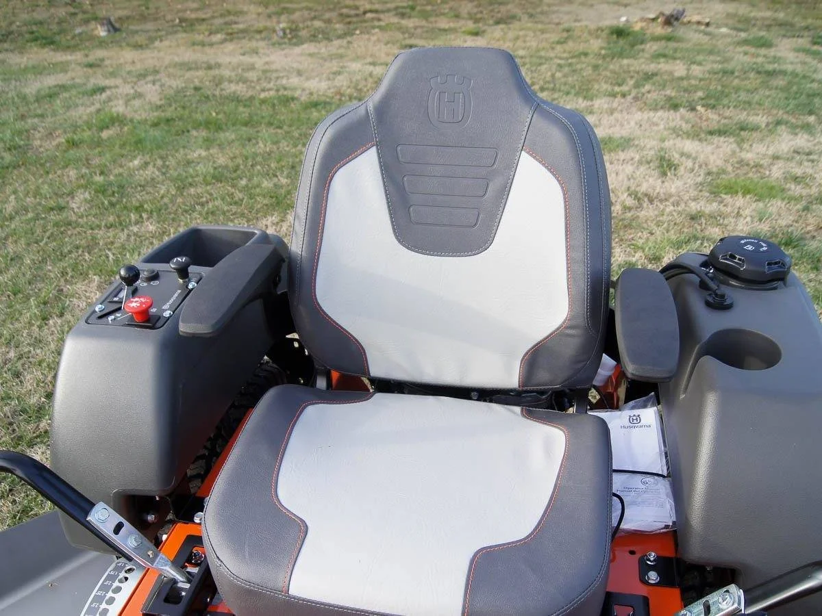 - Pedal-assisted cutting deck lift conveniently all from the operator’s seat