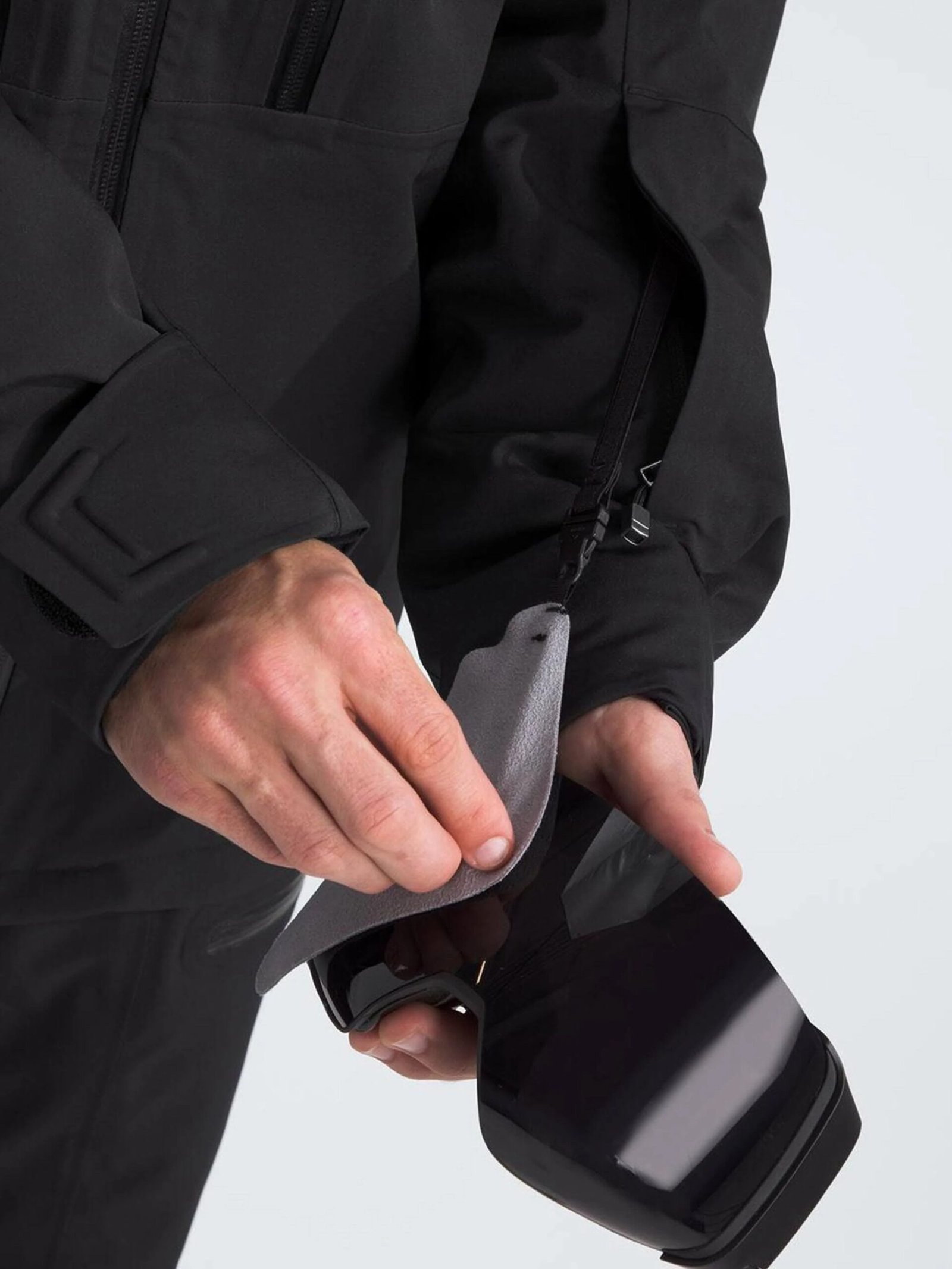 Secure-Zip Wrist Pocket with Goggle Wipe: Convenient for skiing or snowboarding.