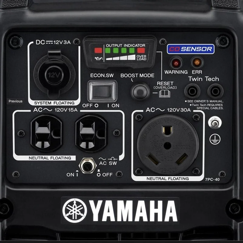- Twin Tech Parallel Function – Connect two EF2200iS generators in- line with a Twin Tech cable for rated 30 AMPS of power.